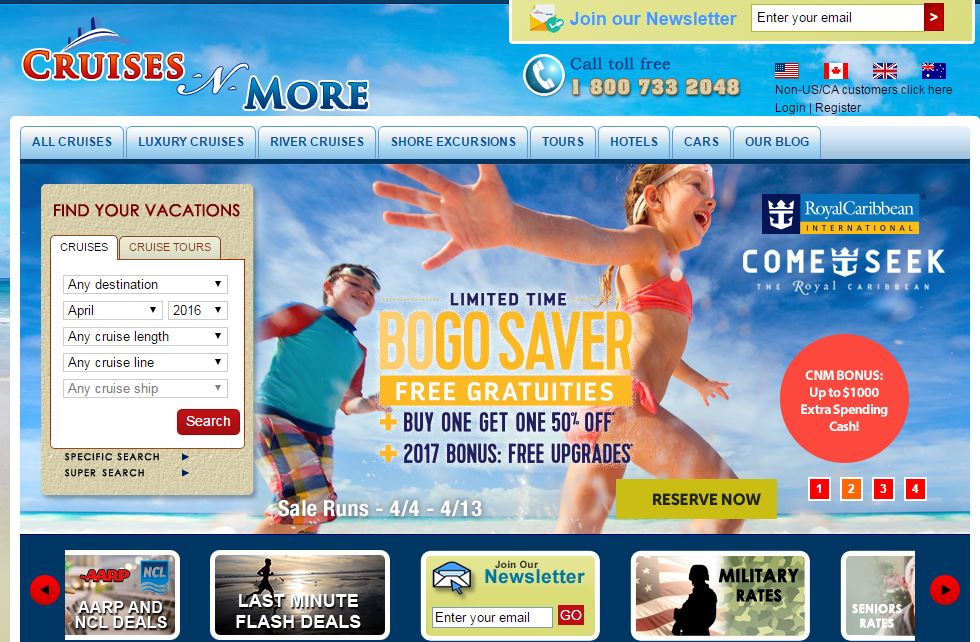 Please contact us for details at 800-733-2048 (toll-free USA/Canada) or +1-407-771-4454 or email us at service@cruises-n-more.com.