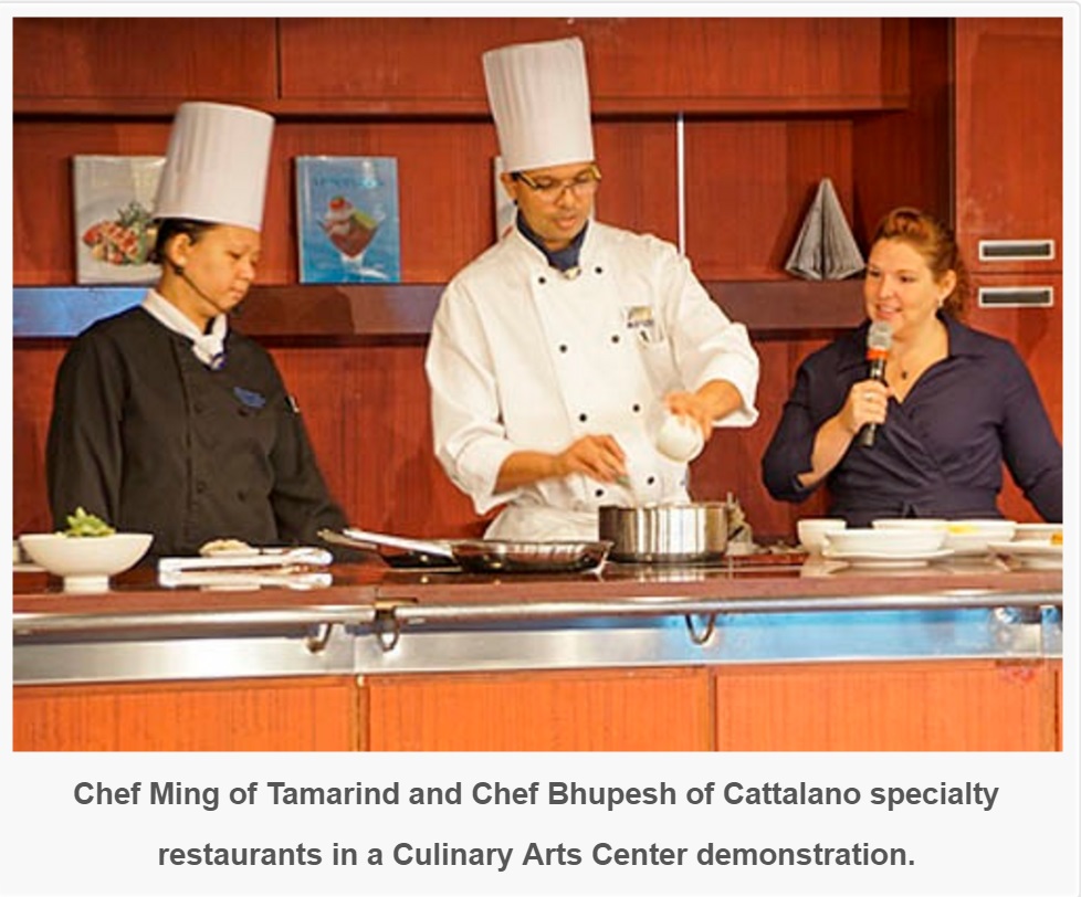Chef Ming of Tamarind and Chef Bhupesh of Cattalano specialty restaurants in a Culinary Arts Center demonstration.
