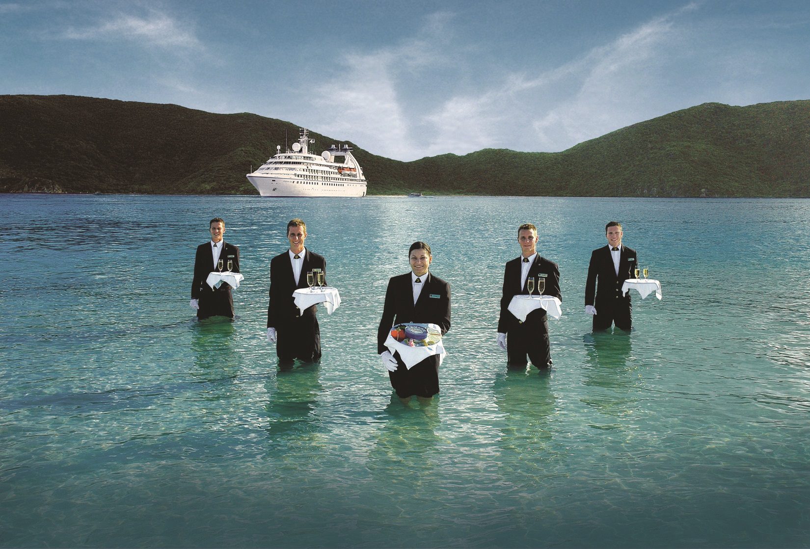 If there is one thing that reflects Seabourn’s brand of luxury, it is the signature “Caviar in the Surf” beach party, which is offered on many cruises to the Caribbean, Belize, Indonesia and Thailand. Guests are tendered ashore, feted with caviar and champagne served by uniformed crew members and served a lavish beach barbecue on fine china.