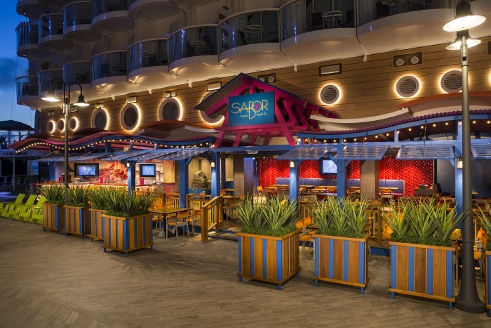 Dive into a fiesta of flavor at Rita’s, serving scrumptious Mexican fare along with the widest selection of margaritas at sea. Caters to families by day and grown ups by night, with live guitar music and dancing. A la carte menu, fee applies.