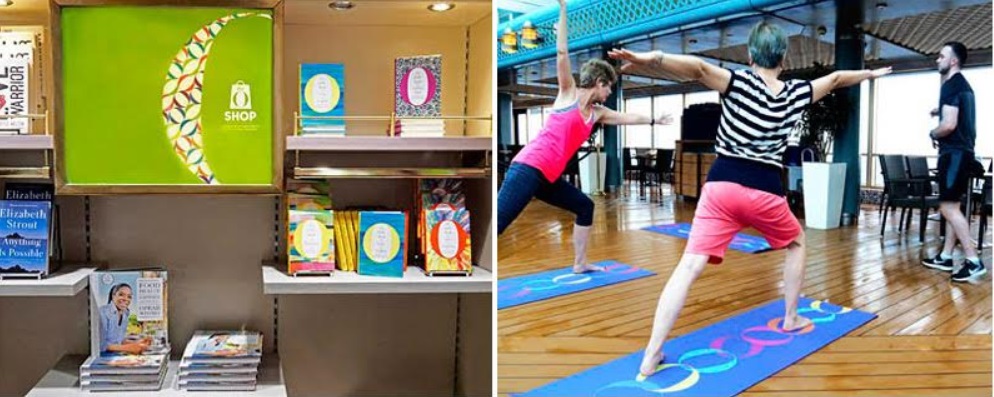Yes, Oprah is everywhere. The presence of the biggest O on HAL cruise ships is most noticeable in the O Shop carrying her books and products in The Shops area of Deck 3. It is curated by the editors of O Magazine. Less obvious are the stretching classes, titled “Let’s Breathe,” held by the mid-ship Lido Pool and led by Rob or another instructor from the Fitness Center (look for the colorful O yoga mats at 7 a.m.). The O program also includes a one-time session per cruise of the O Book Club in the Gallery Lounge. Apparel for sale in the O Shop citing the phrase, “Discover Life Exploring the World,” is a philosophy with which many ardent cruisers would likely agree.