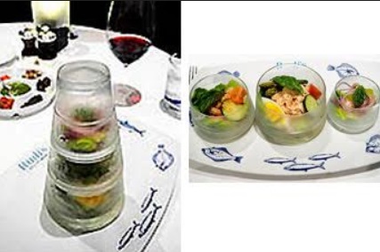 The Pinnacle Grill on the Zuiderdam lacks some of the sophistication of its namesake on the Eurodam. There are no Dutch masters paintings on the walls. The room is bright with an understated elegance, however, and retains some of its original antique statuary while being modernly upscale. The star of the Pinnacle is the cuisine of celebrity Master Chef Rudi Sodamin. On a single evening during each cruise on all HAL ships Rudi’s Sel de Mer (literally “salt of the sea”) braisserie of seafood is featured. Limoges porcelain plates with Rudi’s own whimsical artistic designs inspired by the Cote D’Azur – the seafood painted on mine looked real enough to eat – and his unique appetizer, Rudi’s Seafood Tower – three stacked containers with octopus, shrimp cocktail, and crabmeat – were the stars of the show.