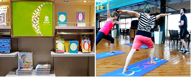Yes, Oprah is everywhere. The presence of the biggest O on HAL cruise ships is most noticeable in the O Shop carrying her books and products in The Shops area of Deck 3. It is curated by the editors of O Magazine. Less obvious are the stretching classes, titled Let’s Breathe, held by the mid-ship Lido Pool and led by Rob or another instructor from the Fitness Center (look for the colorful O yoga mats at 7 AM). The O program also includes a one-time session per cruise of the O Book Club in the Gallery Lounge. Apparel for sale in the O Shop citing the phrase “Discover Life Exploring the World” is a philosophy with which many ardent cruisers would likely agree.