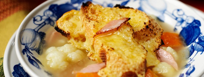 The Dutch are great soup eaters, often featuring soup as a main dish. This hearty soup, enriched with Gouda cheese, is perfect served piping hot on a chilly evening. Gouda is the quintessential Dutch cheese to use: a young Gouda will give you a soft, mild taste, while an aged one will provide more complex and robust flavor.