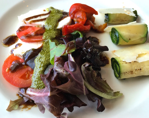 The Antipasto Assortito di Magro was a yummy combo of mozzarella cheese, grilled zucchini, tomatoes and roasted red and yellow peppers, drizzled with balsamic vinegar and basil sauce.