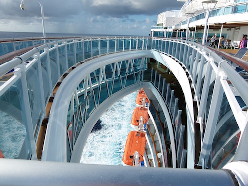 While I was on the upper deck, I took photos of that unusual SeaWalk that juts out from the Lido Deck. It is a strange stomach-churning feeling to walk on that cantilevered glass walkway and see the ocean 16 decks below.