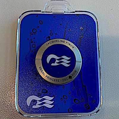I’ve just boarded the ship and already have seen one nice advantage of the Ocean Medallion. When I checked in, along with my cruise card I was given a round silver and blue medal medallion with the Princess logo, my name, the name of the ship and the date of our cruise.