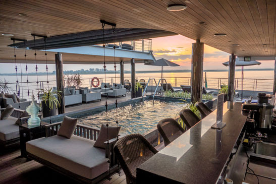 Scenic is the only river cruise line to design and build their SE Asia luxury river ships to meet European safety standards. The 68-guest Scenic Spirit on the Mekong and the 44-guest Scenic Aura for the Irrawaddy include key features such as marine paneling so noises do not penetrate to adjoining suites, compartmentalized fire zones, and custom built-in sprinkler systems throughout all public and private spaces. Accommodations onboard are all suites with walk out balconies (no porthole cabins) and are the most spacious and luxurious in SE Asia, offering sizes of up to 861 ft² on the Mekong and 735 ft² on the Irrawaddy. Guests enjoy pillow menus, scenic slumber beds, separate living and bedroom and bathrooms, and walk in wardrobes. Public areas include a pool, open air cinema, sun decks, spa, fitness room, sauna and steam room (Spirit), elevator (Spirit) and multiple dining options. Guests are also able to take in a stunning visual display of some of the most popular local artists of recent times, with a gallery of original artworks adorning the walls and hallways of both ships.