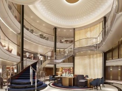 All the design comes together in the ship’s Grand Lobby, a multi-story homage to cruising’s Golden Age.