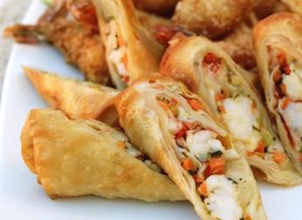 Cut lobster rolls diagonally through the center before serving. Serve hot with sauce for dipping.