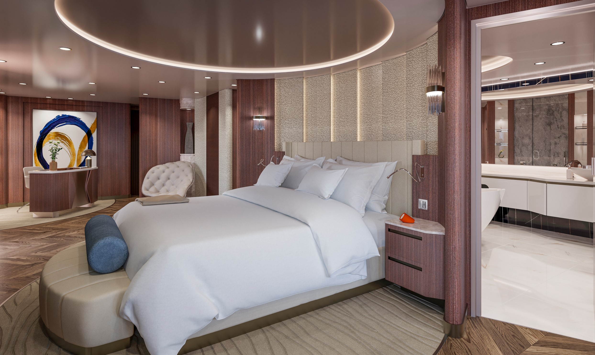 The most spacious suite on board EXPLORA I offers guests thoughtfully designed 280 sqm (3,014 sq ft) of spaces featuring iconic European design to reflect the philosophy of creating an “Ocean State of Mind”.